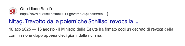 Il Ministro della Salute ha firmato oggi un decreto di revoca della commissione dopo appena dieci giorni dalla nomina.